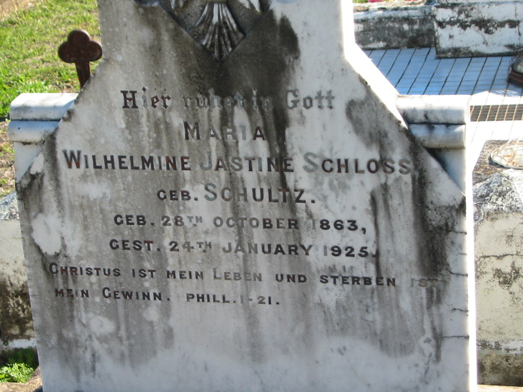Maria Wilhelmine Jastine SCHLOSS (geb SCHULTZ); b: 28 Oct 1873; d: 24 Jan 1925