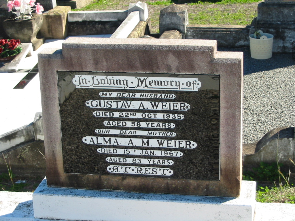 Gustav A. WEIER, died 22 Oct 935 aged 58 years, husband;