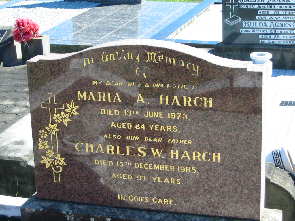 Maria A. HARCH, died 13 June 1973 aged 84 years, wife mother;