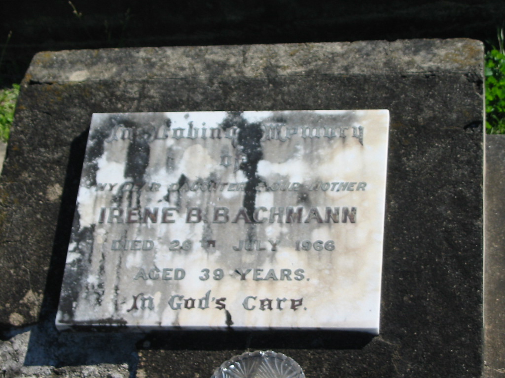 Irene B. BACHMANN, died 28 July 1966 aged 39 years, daughter mother;