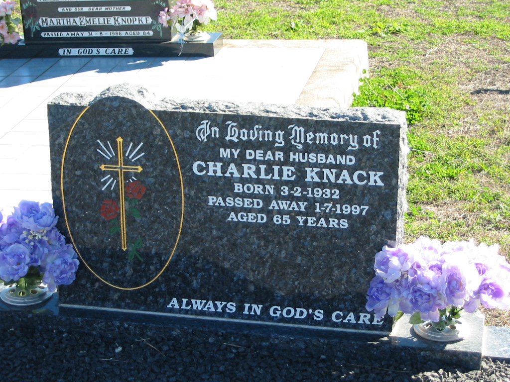 Charlie KNACK, born 3-2-1932 died 1-7-1997 aged 65 years, husband;