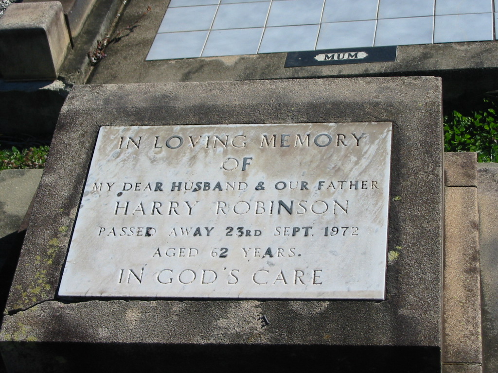 Harry ROBINSON, died 23 Sept 1972 aged 62 years, husband father;