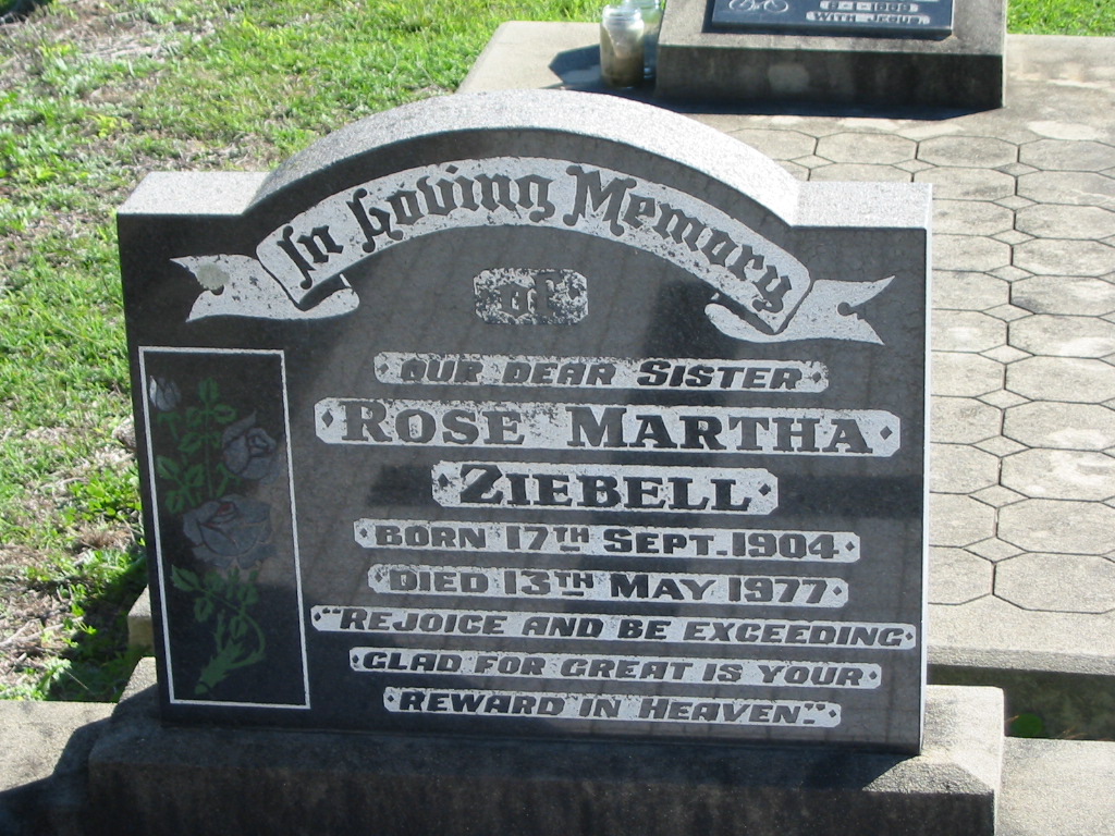 Rose Martha ZIEBELL, born 17 Sept 1904 died 13 May 1977, sister;