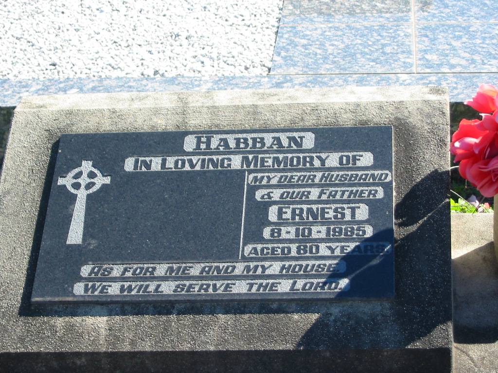 August HABBAN, died 22 Oct 1993 aged 89 years, husband father step-father;