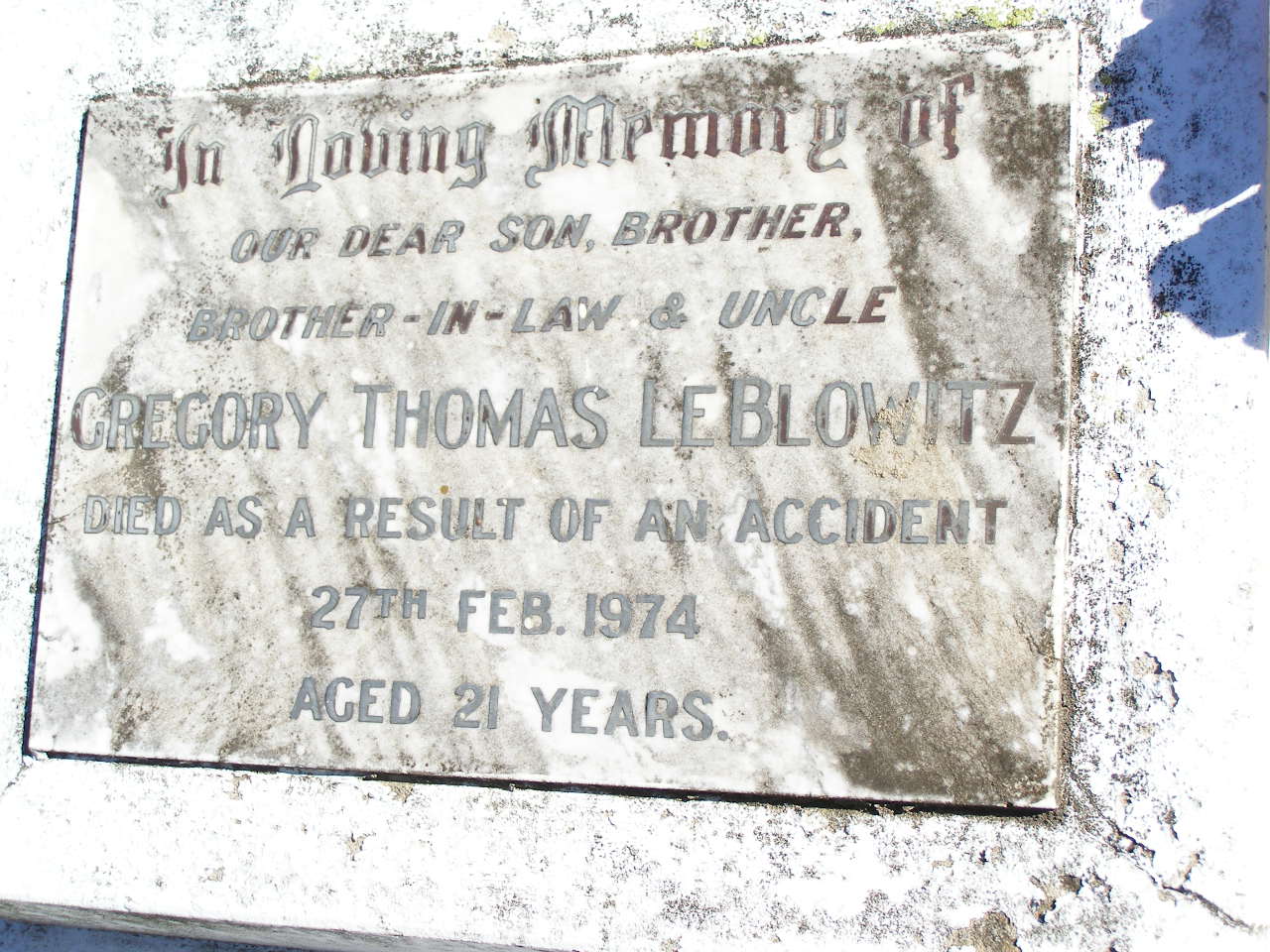 Gregory Thomas LE BLOWITZ,