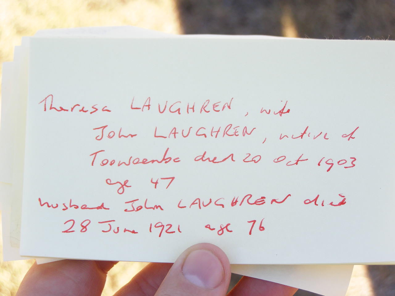 died 28-5-1988 Helidon Qld,