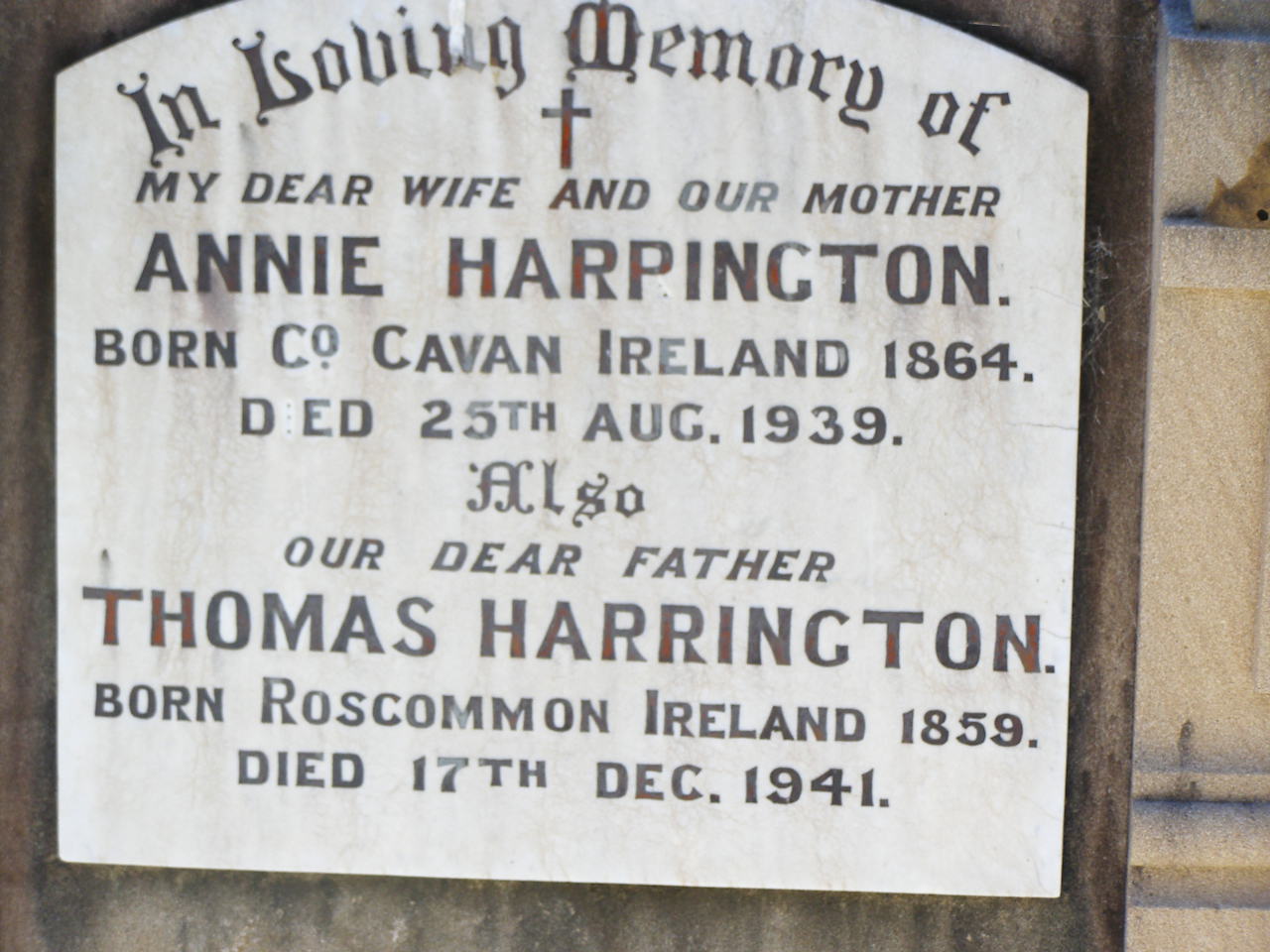 interred Toowoomba 1946 aged 82;