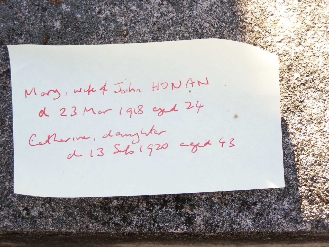 Ancestry link for Mary HONAN's death certificate