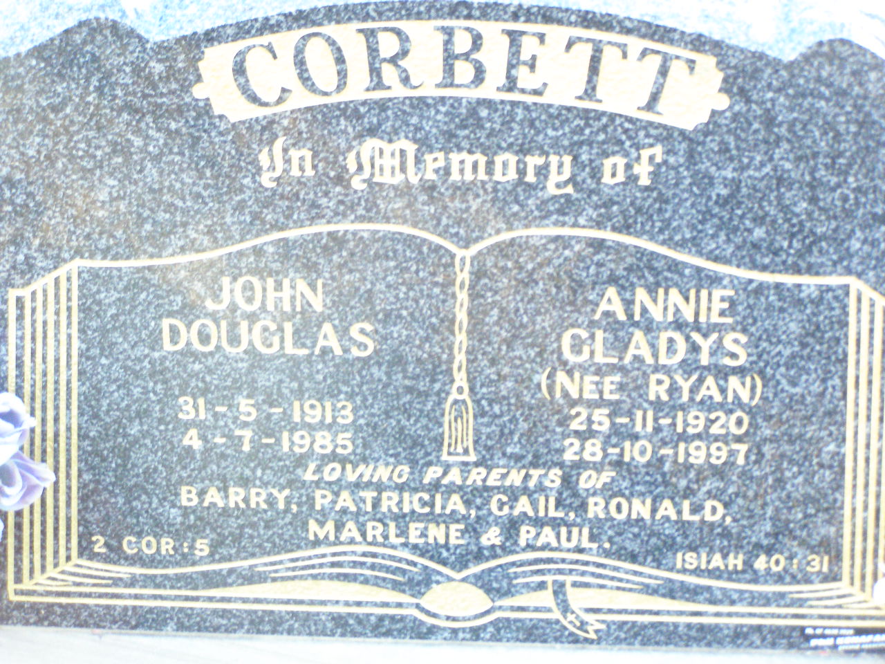 born 19 July 1906 died 25 July 2002 aged 96 years;