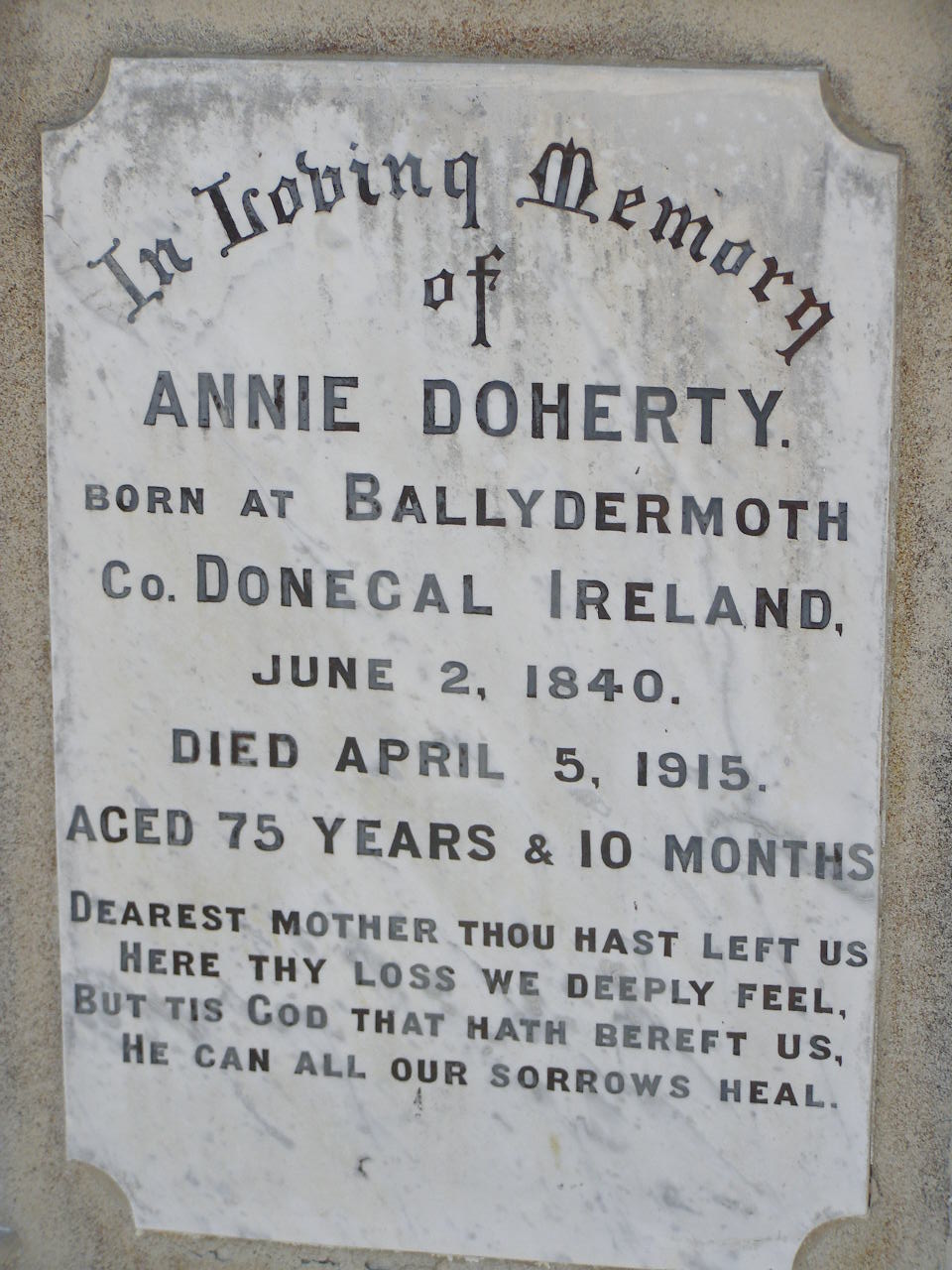 died 1 Oct 1915 aged 76 years;