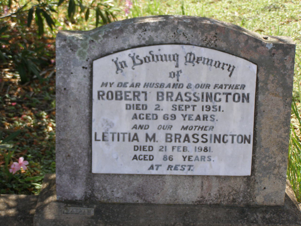 died 5 Oct 1905 aged 65 years;