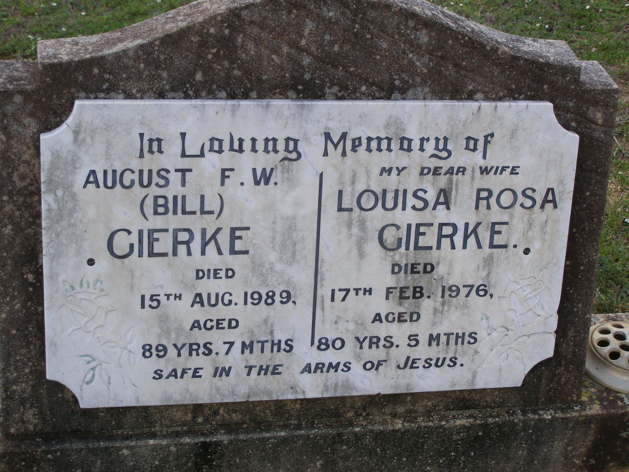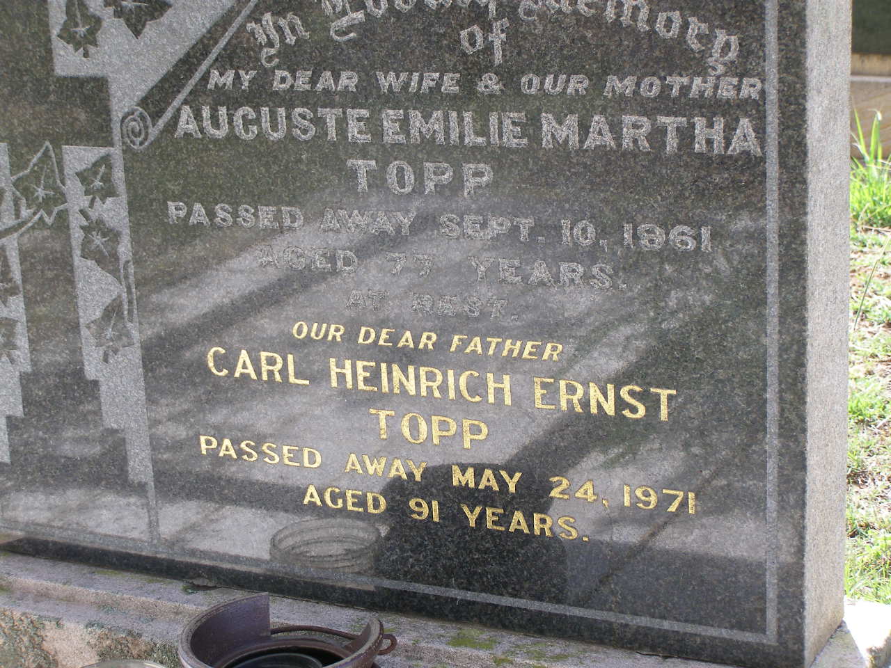 died 11-8-2001 aged 86 years;