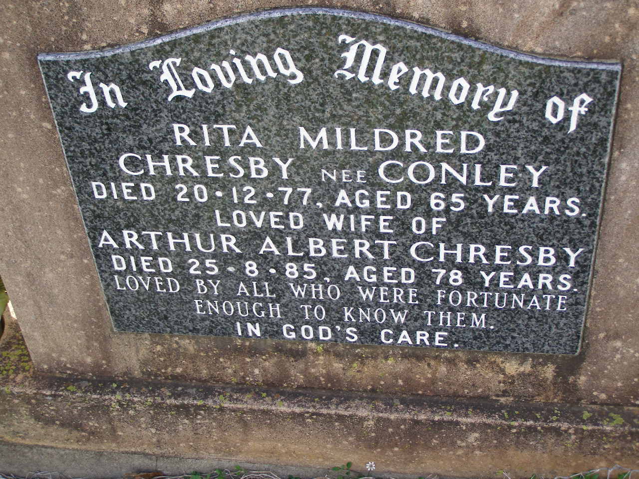 wife of Arthur Albert CHRESBY;