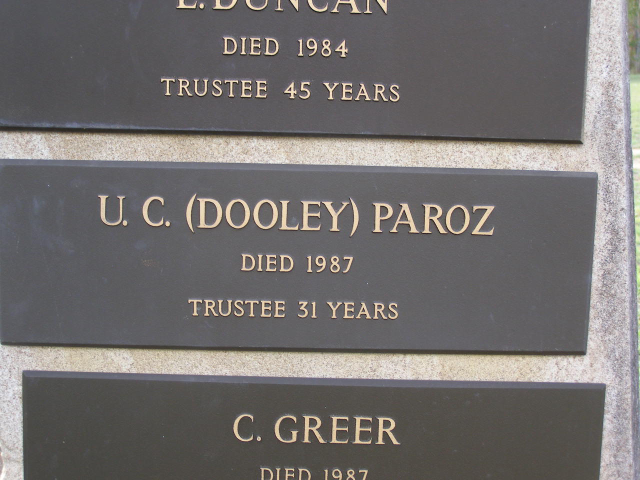 U.C. (Dooley) PAROZ, died 1987, trustee 31 years;