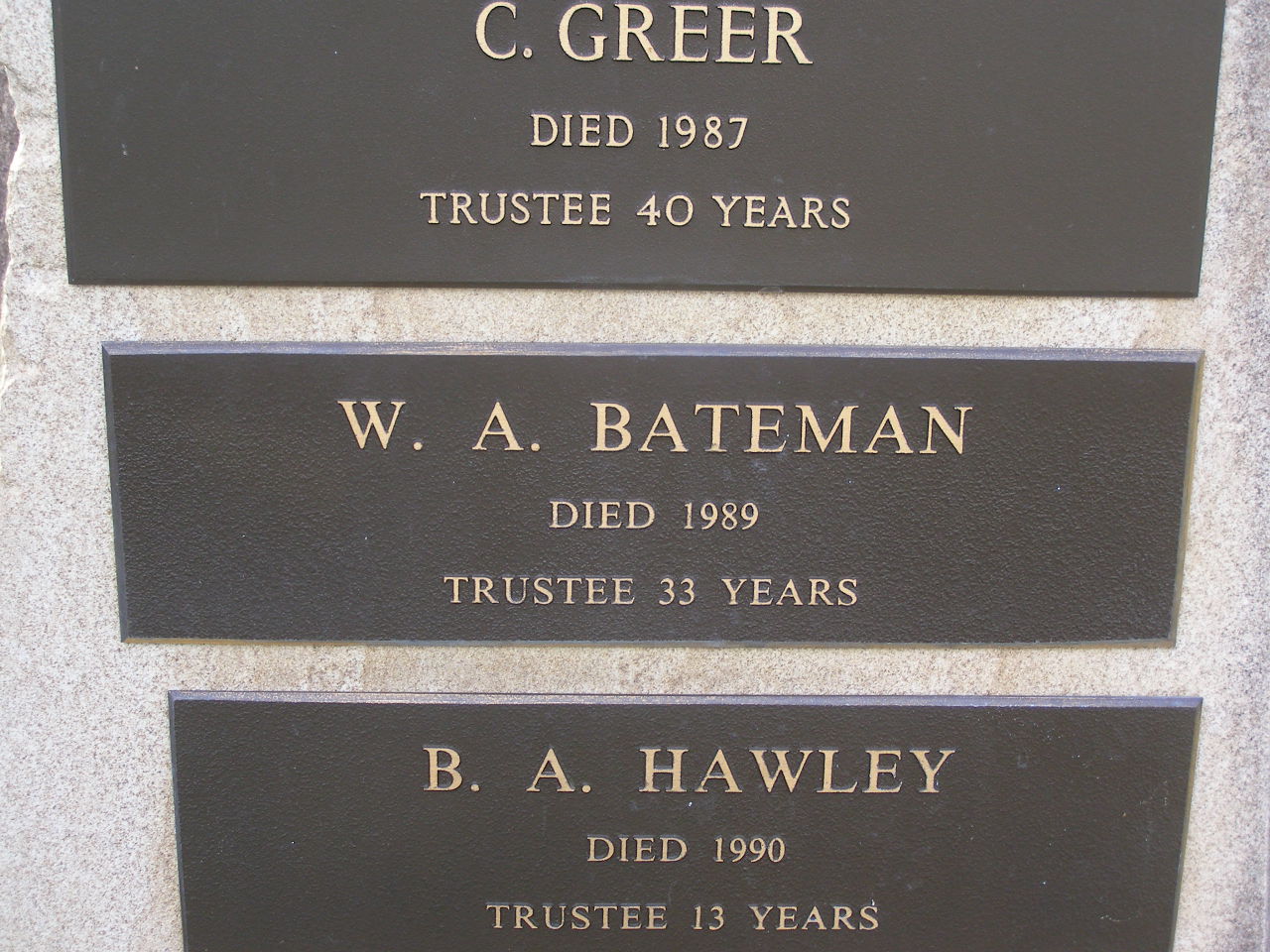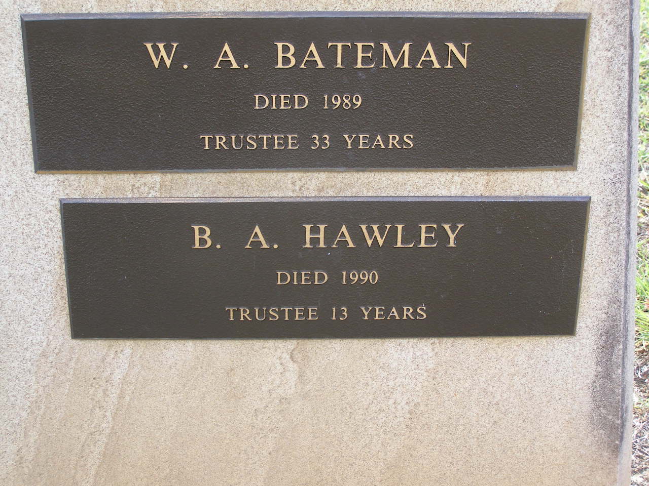 W.A. BATEMAN, died 1989, trustee 33 years;