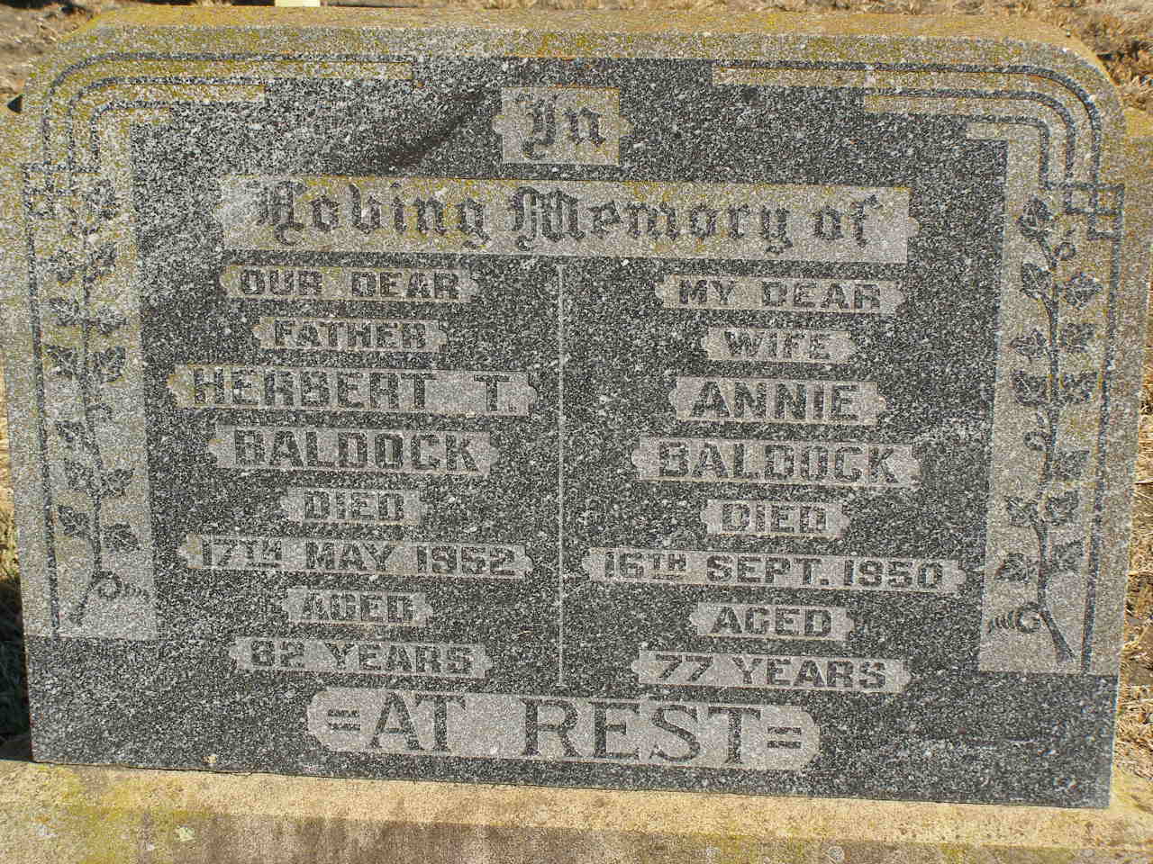died 17 May 1952 aged 82 years;