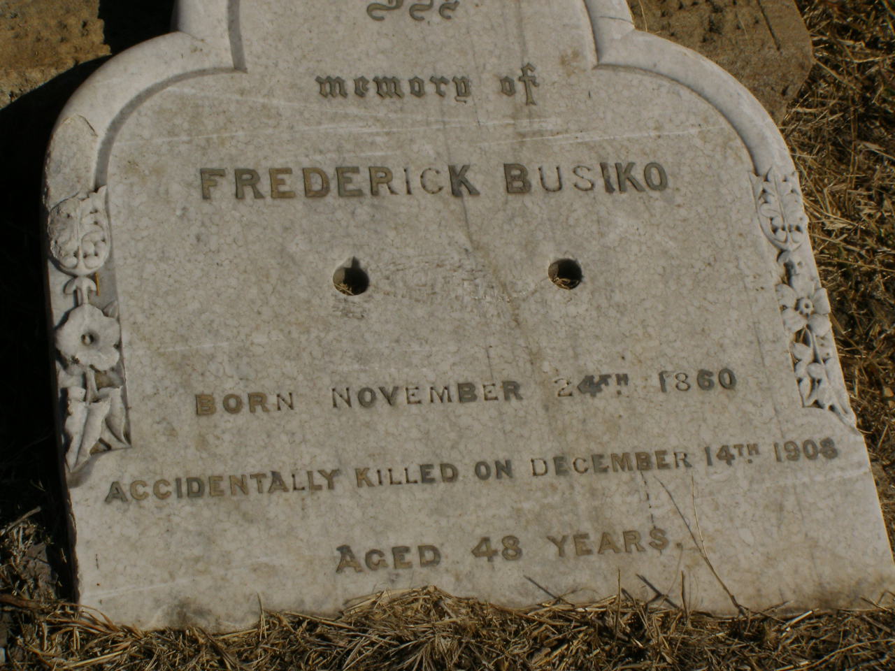 accidentally killed 14 Dec 1908 aged 48 years;
