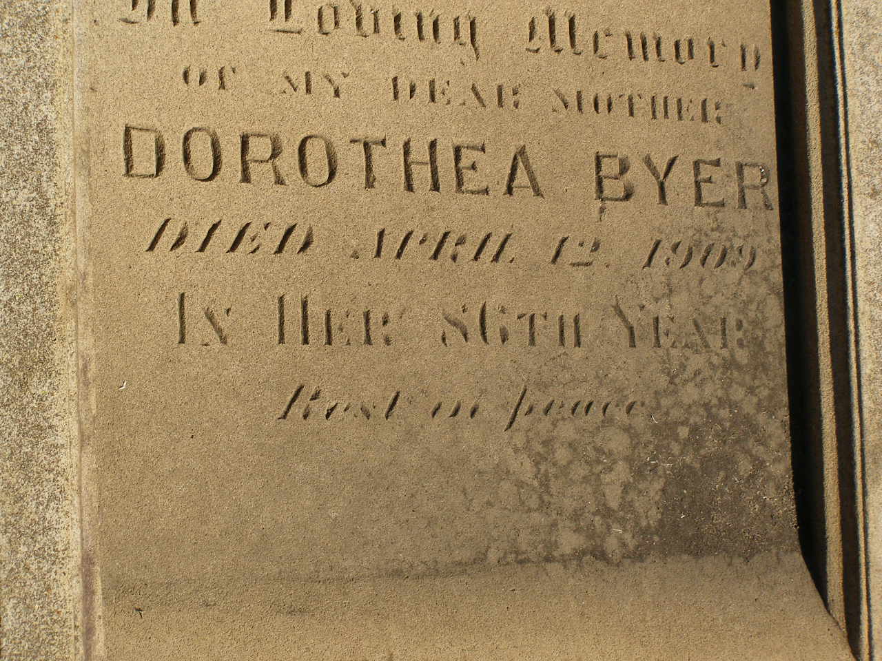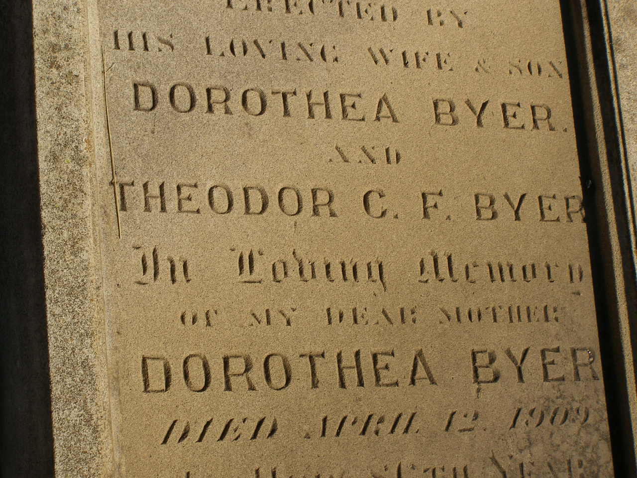 erected by wife Dorothea BYER
