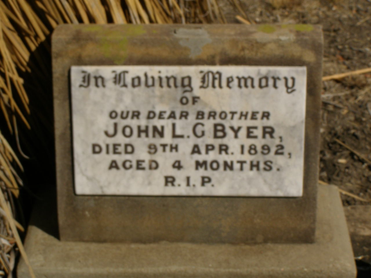 died 9 April 1892 aged 4 months;