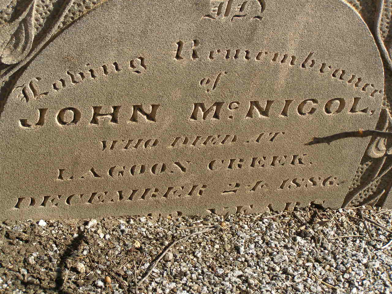 died Lagoon Creek 24 Dec 1886 aged 82? years;