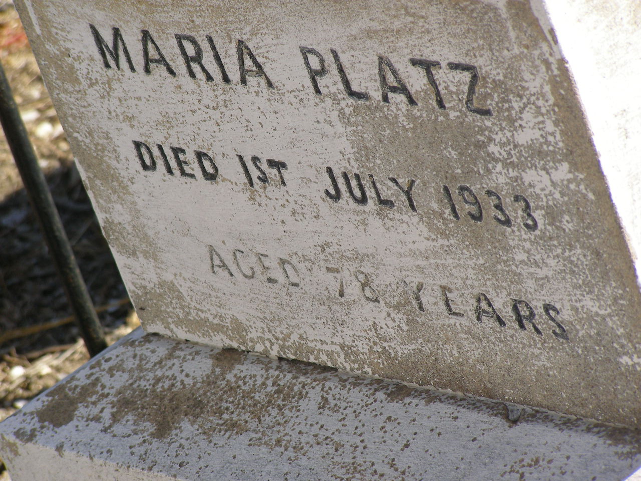 daughter of Valentine & Mary PLATZ,