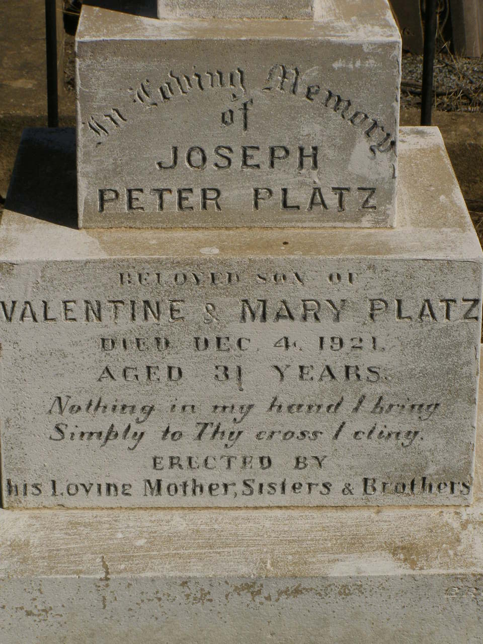 son of Valentine & Mary PLATZ,