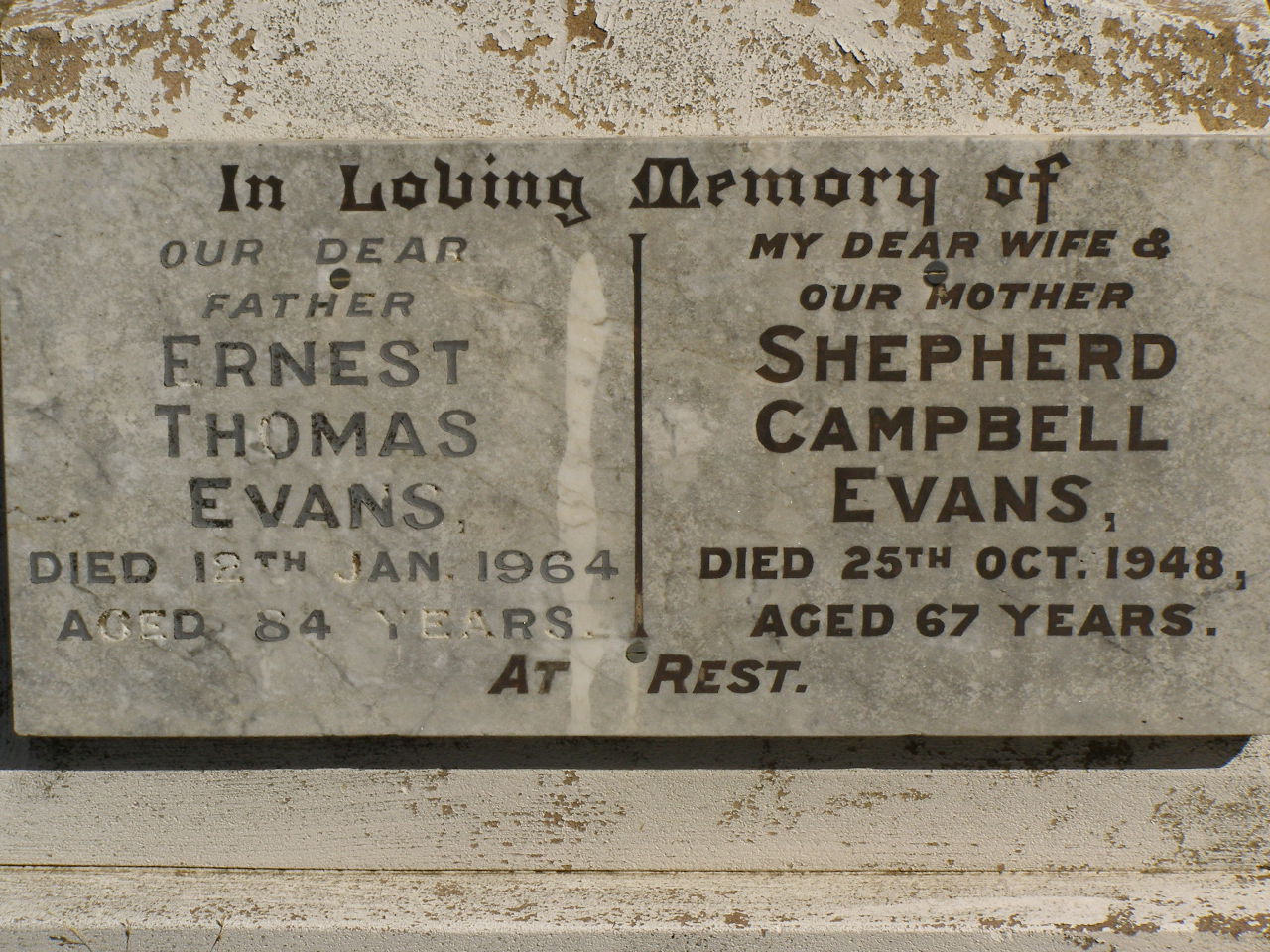 died 20 Sept 1958 aged 73 years;