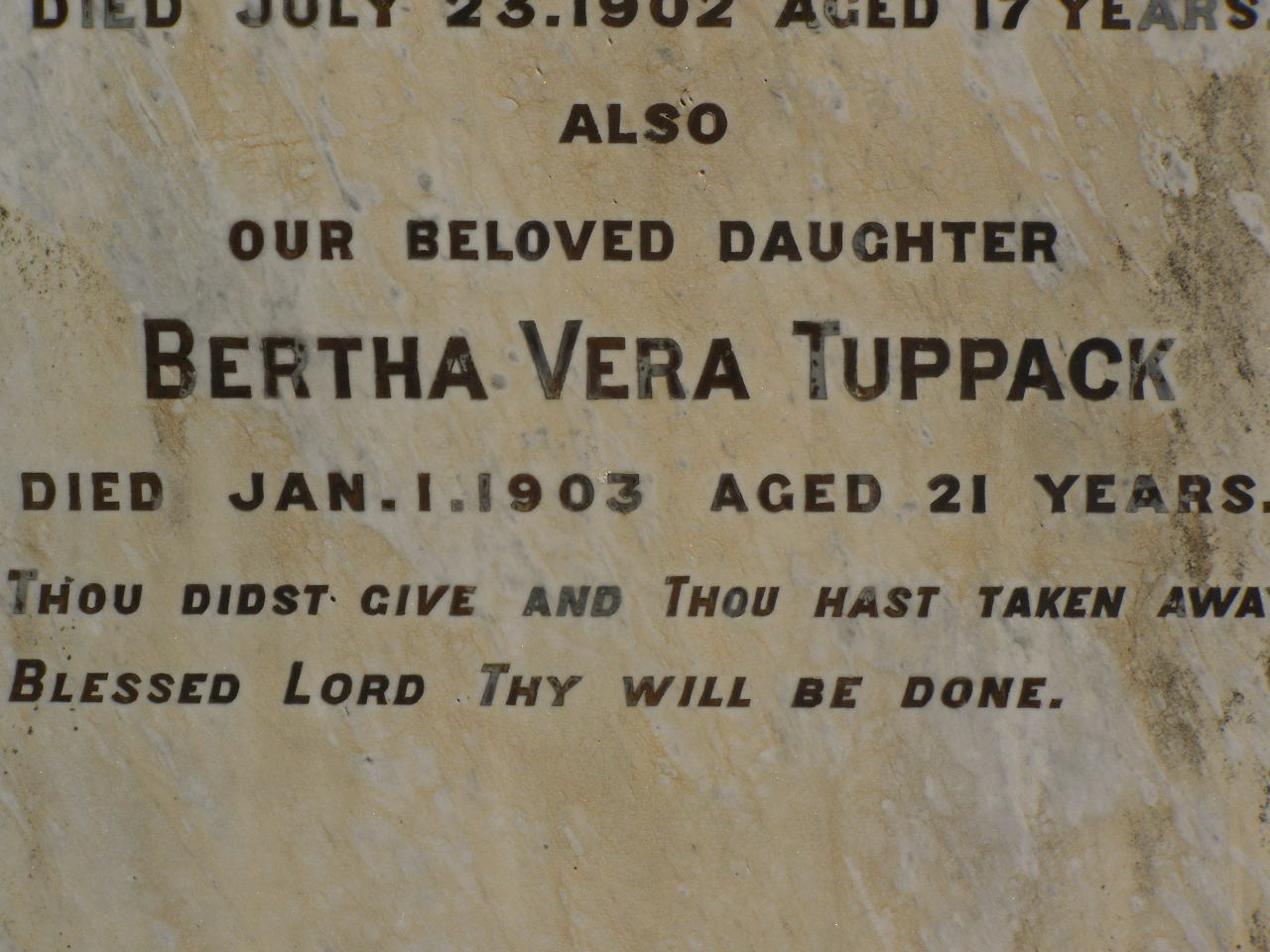 died Toowoomba 22 July 1934 aged 80 years;