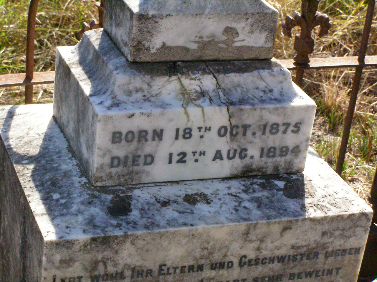 born 18 Oct 1875 died 12 Aug 1894;