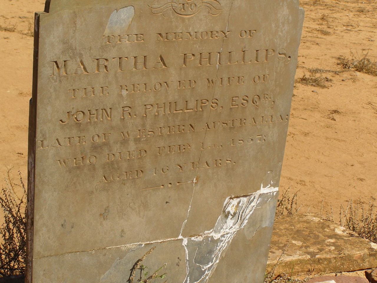 Martha PHILLIPS, (wife of John R PHILLIPS) d: Feb 1 1857, aged 46