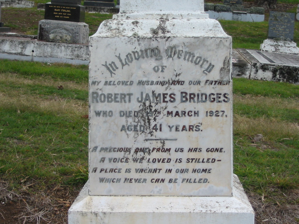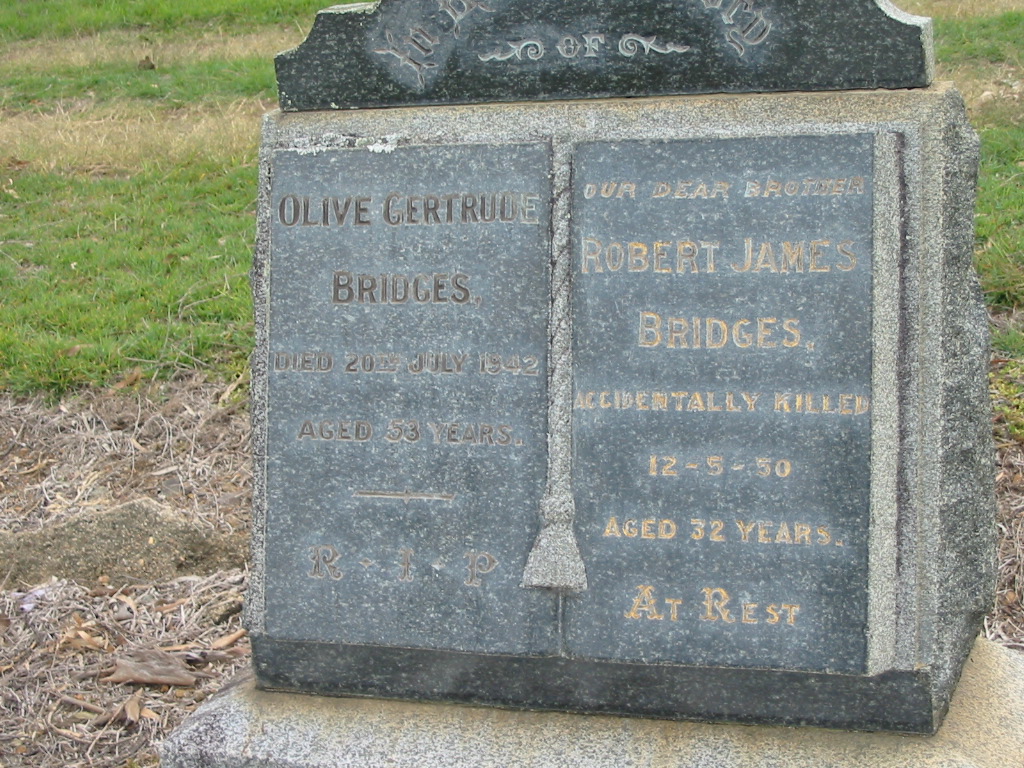 Our dear brother, Robert James BRIDGES, accidentally killed 12-5-50 aged 32 years;