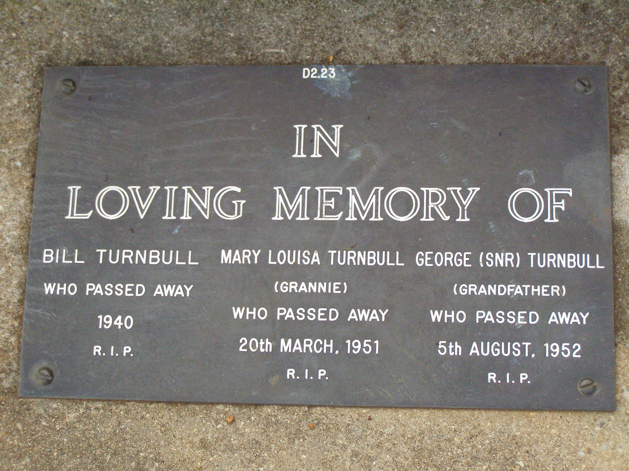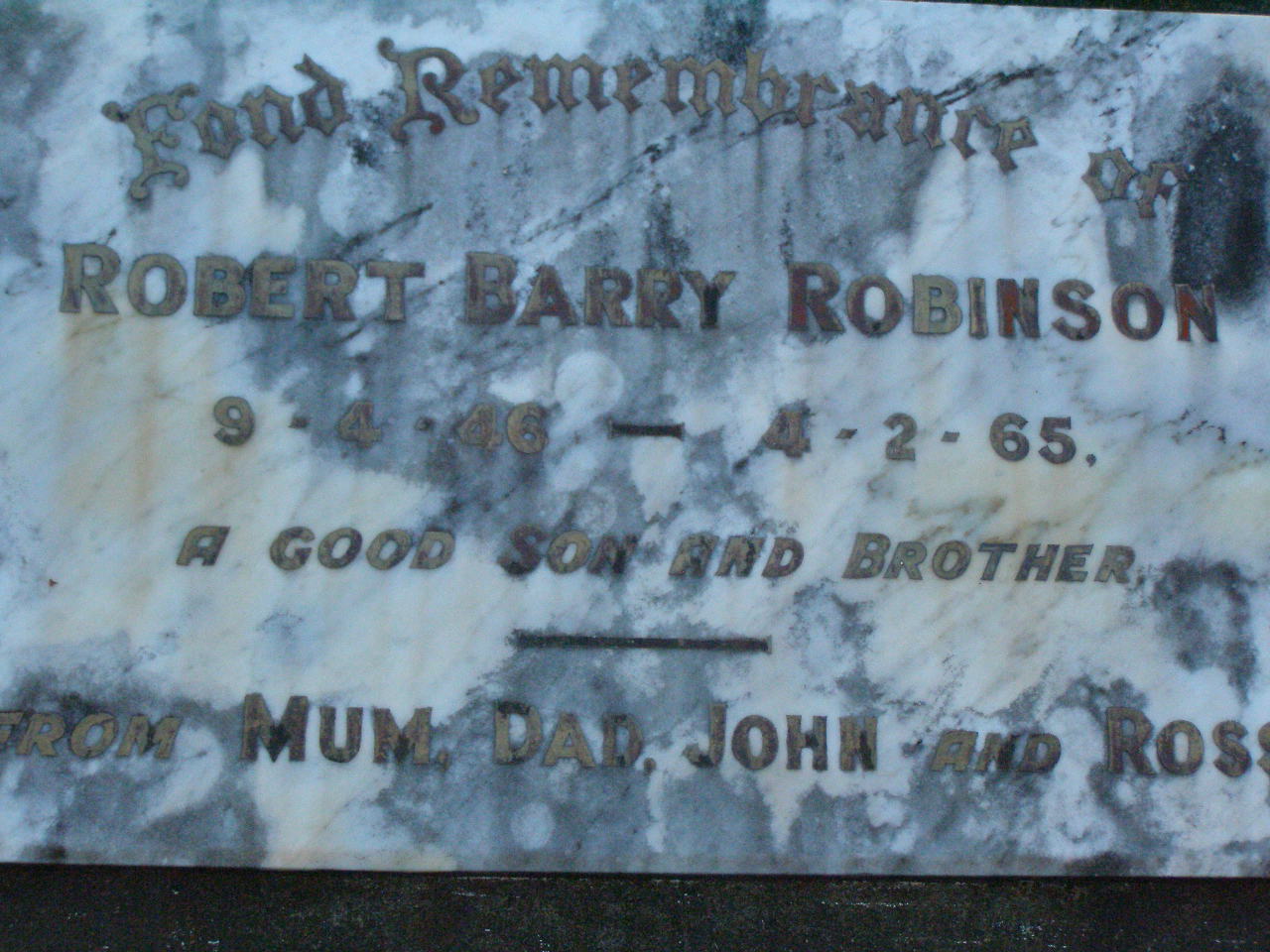 20 April 1940 - 14 Oct 2003 aged 63 years;