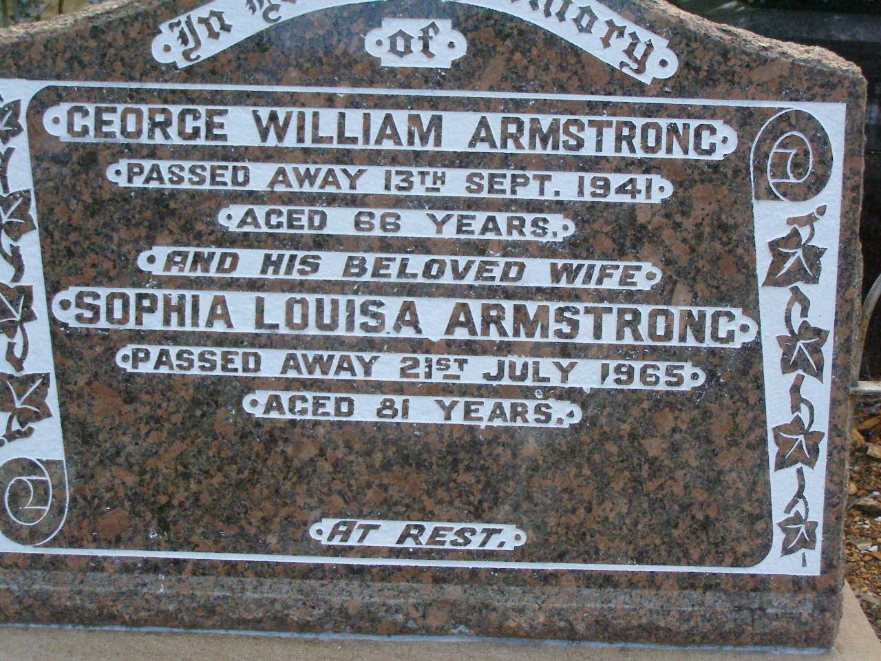died 1 March 1985 aged 77 years 6 months;