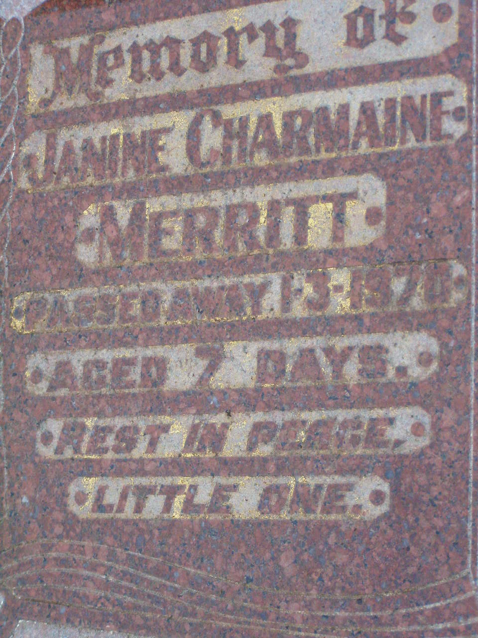 died 25 Sept 1982 aged 9 weeks;