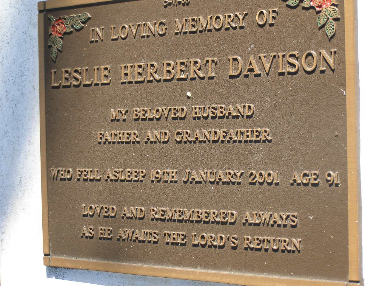 11-12-1909 - 17-08-2000 aged 90 years;