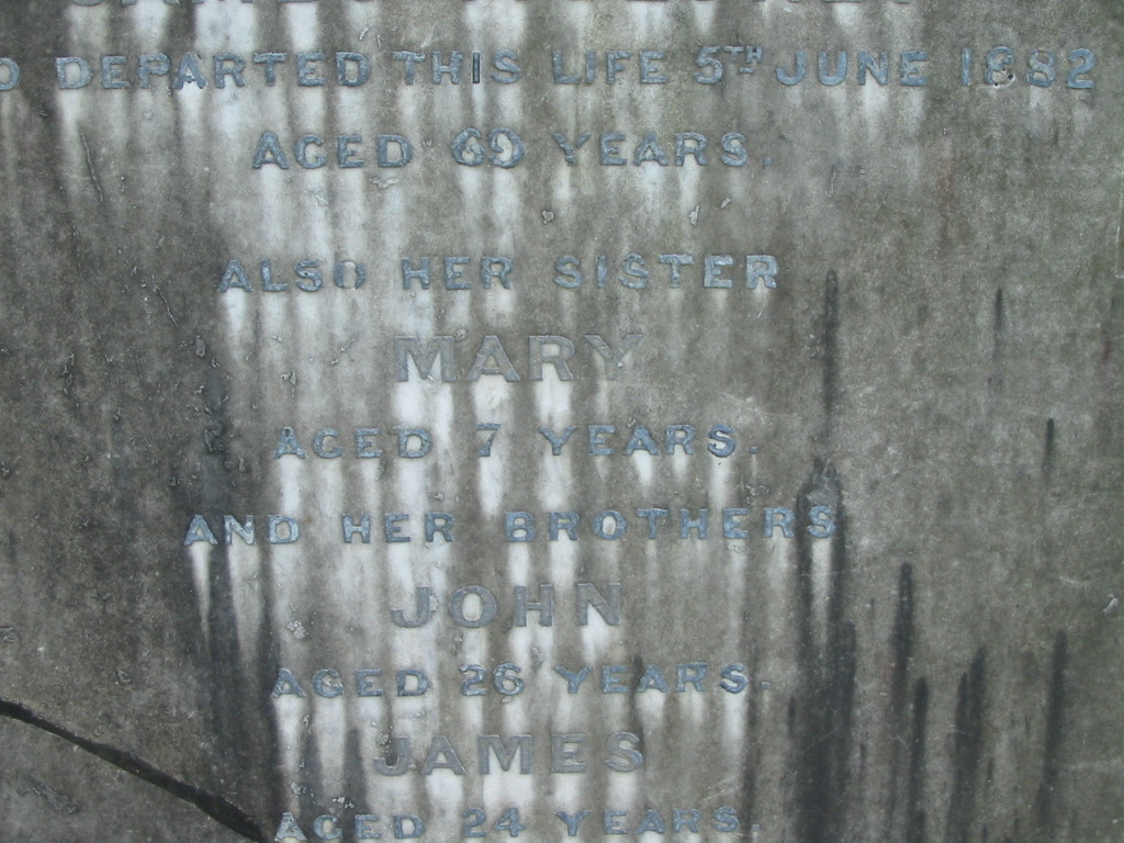 Lucy. Confirmed burials on this site include John (senior) and Mary