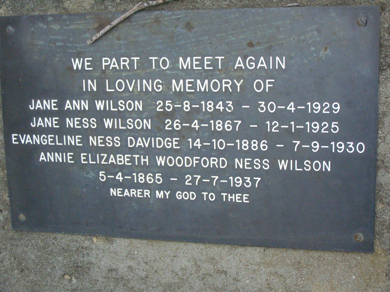 Annie Elizabeth Woodford Ness WILSON,
