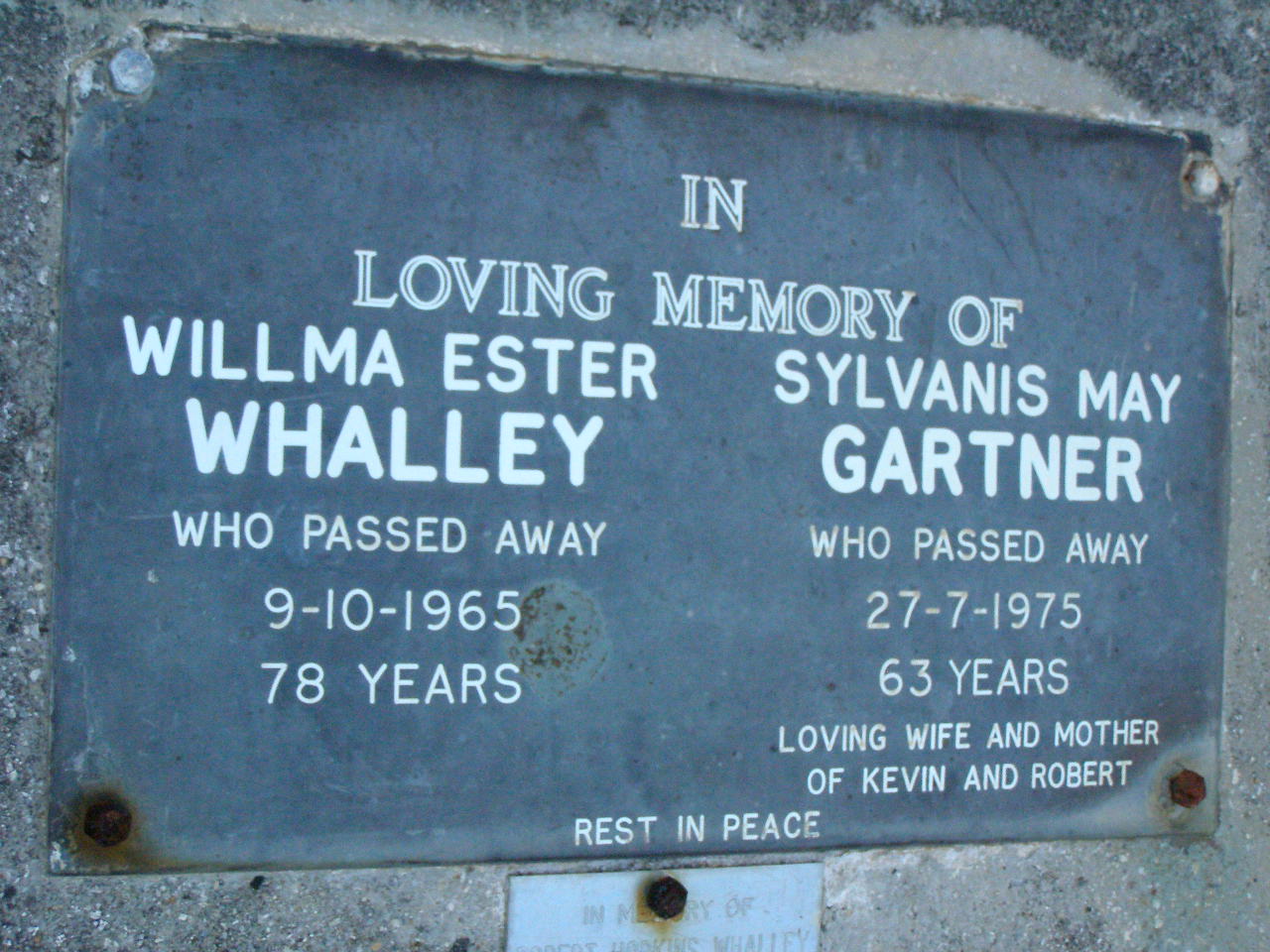 died 25 Sept 1973 aged 87 years;