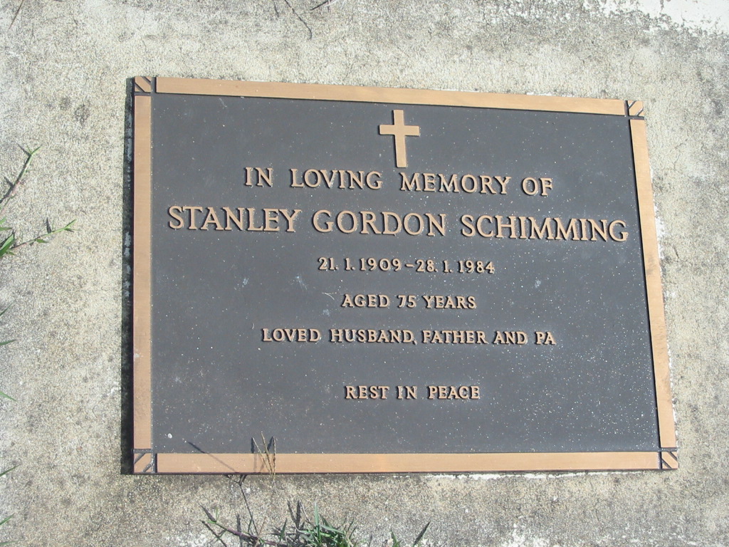 Stanley Gordon SCHIMMING, 21-1-1909 - 28-1-1984 aged 75 years, husband father pa;