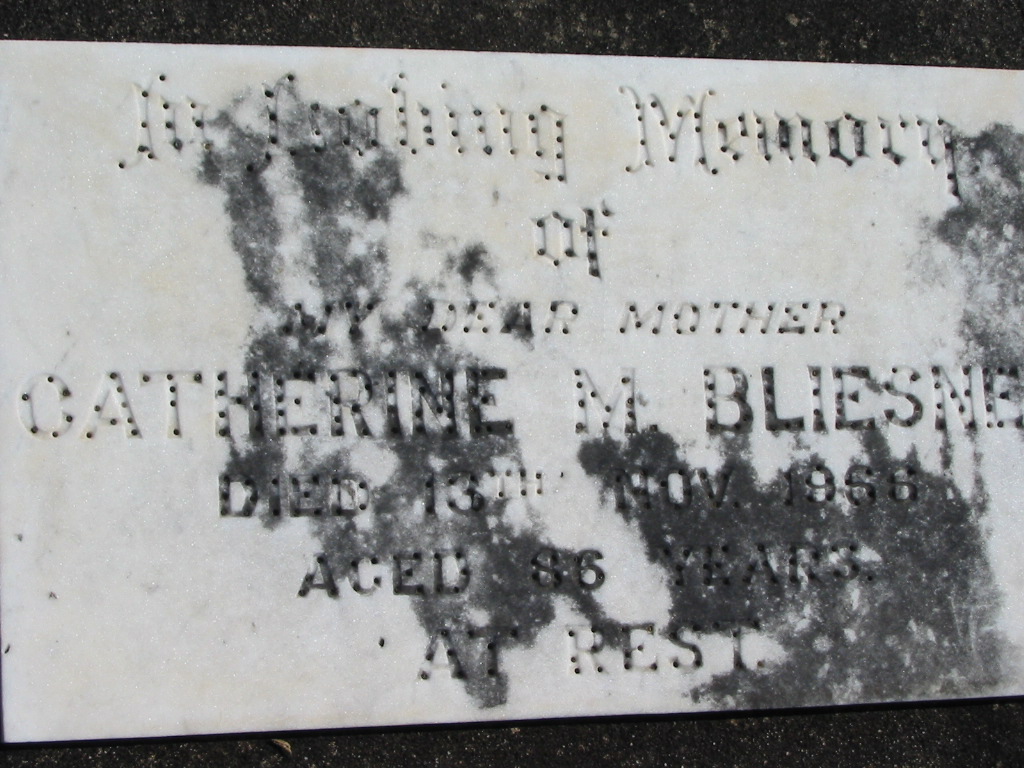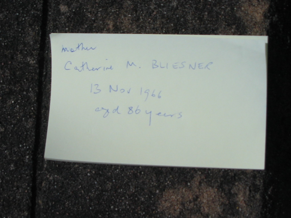 Catherine M. BLIESNER, died 13 Nov 1966 aged 86 years, mother;