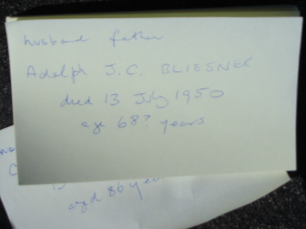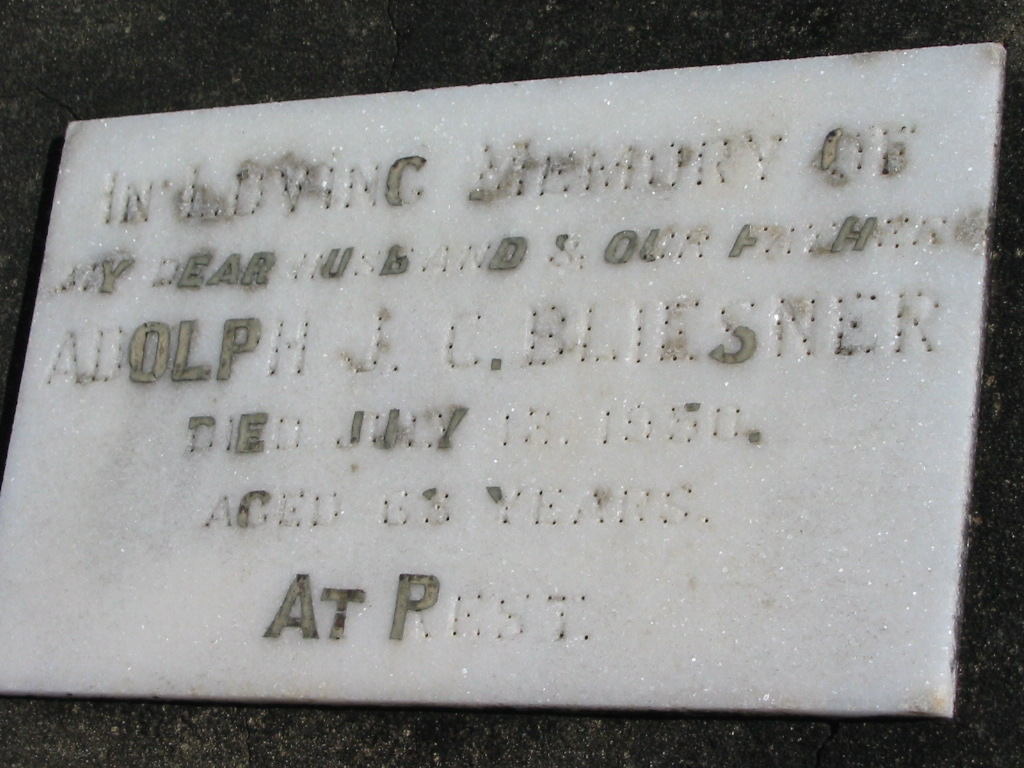Adolph J.C. BLIESNER, died 13 July 1950 aged 68? years;