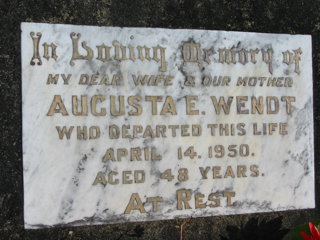 Augusta E. WENDT, died 14 April 1950 aged 48 years, wife mother;