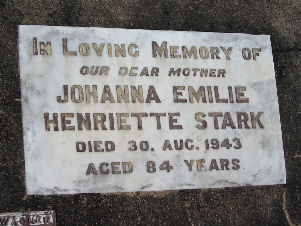 Johanna Emilie Henriette STARK, died 30 Aug 1943 aged 84 years, mother;