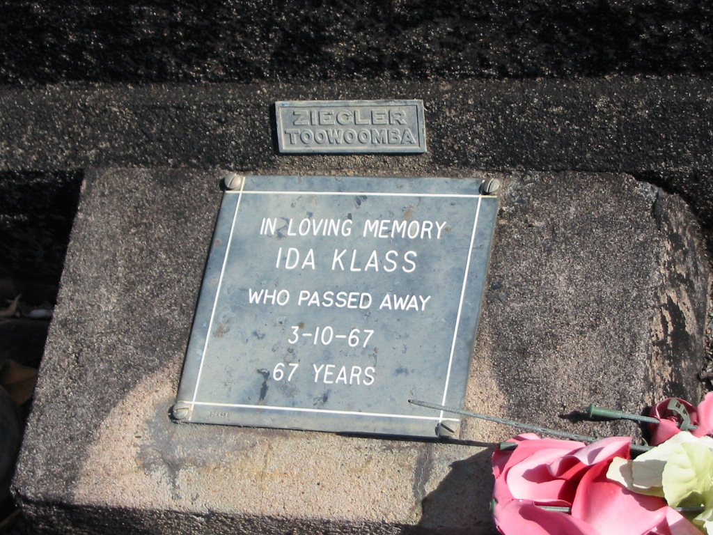 Bertha Anna KLASS, died 18 Mar 1969 aged 76 years, mother;