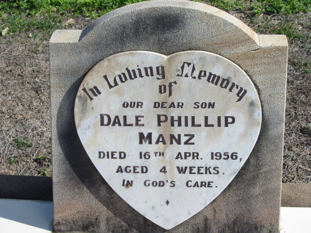 Dale Phillip MANZ, died 16 Apr 1956 aged 4 weeks, son;