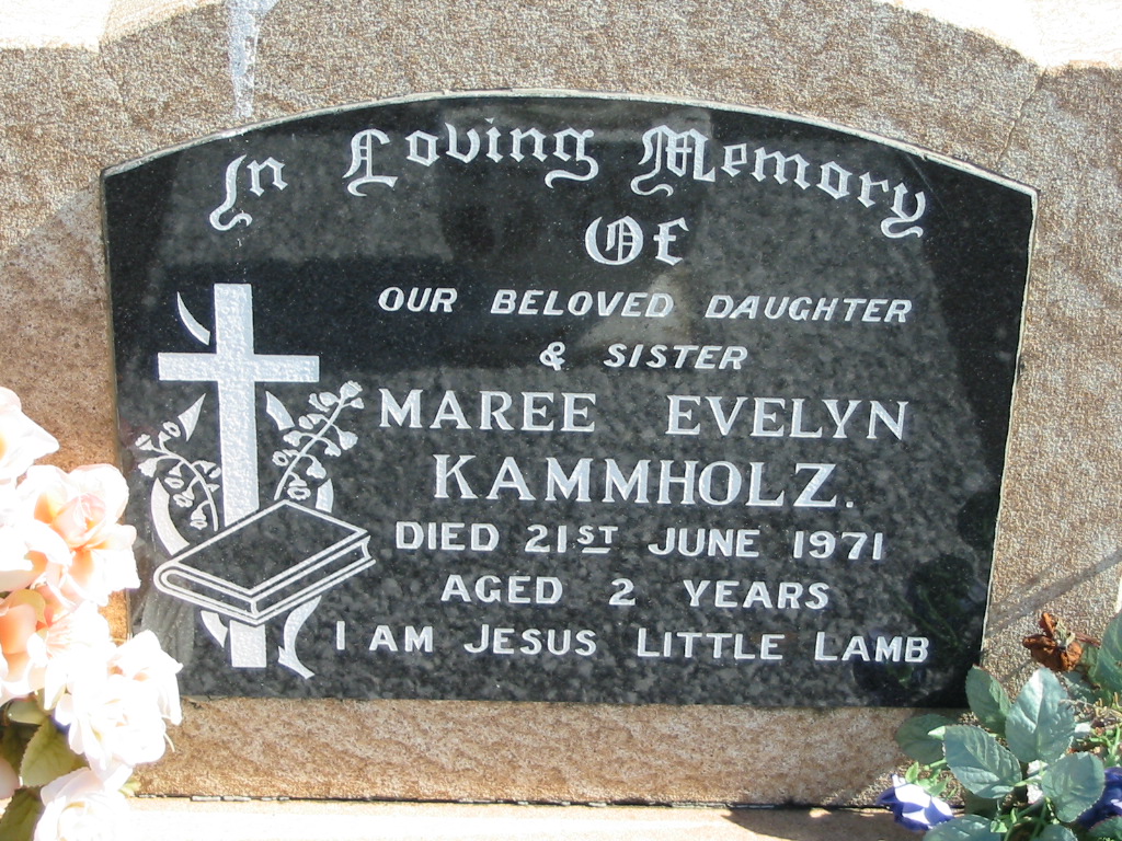 Maree Evelyn KAMMHOLZ, died 21 June 1971 aged 2 years, daughter sister;