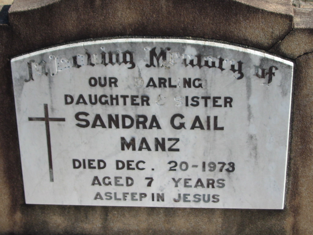 Sandra Gail MANZ, died 20 Dec 1973 aged 7 years, daughter sister;