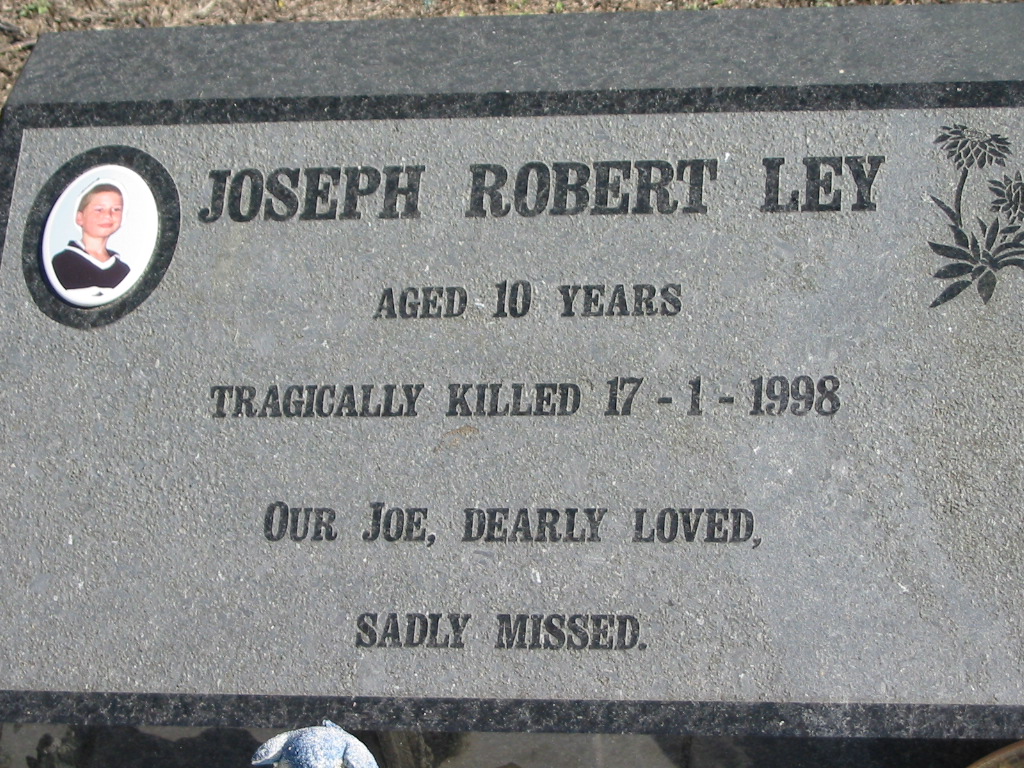 Joseph Robert LEY, killed 17-1-1998, aged 10 years;