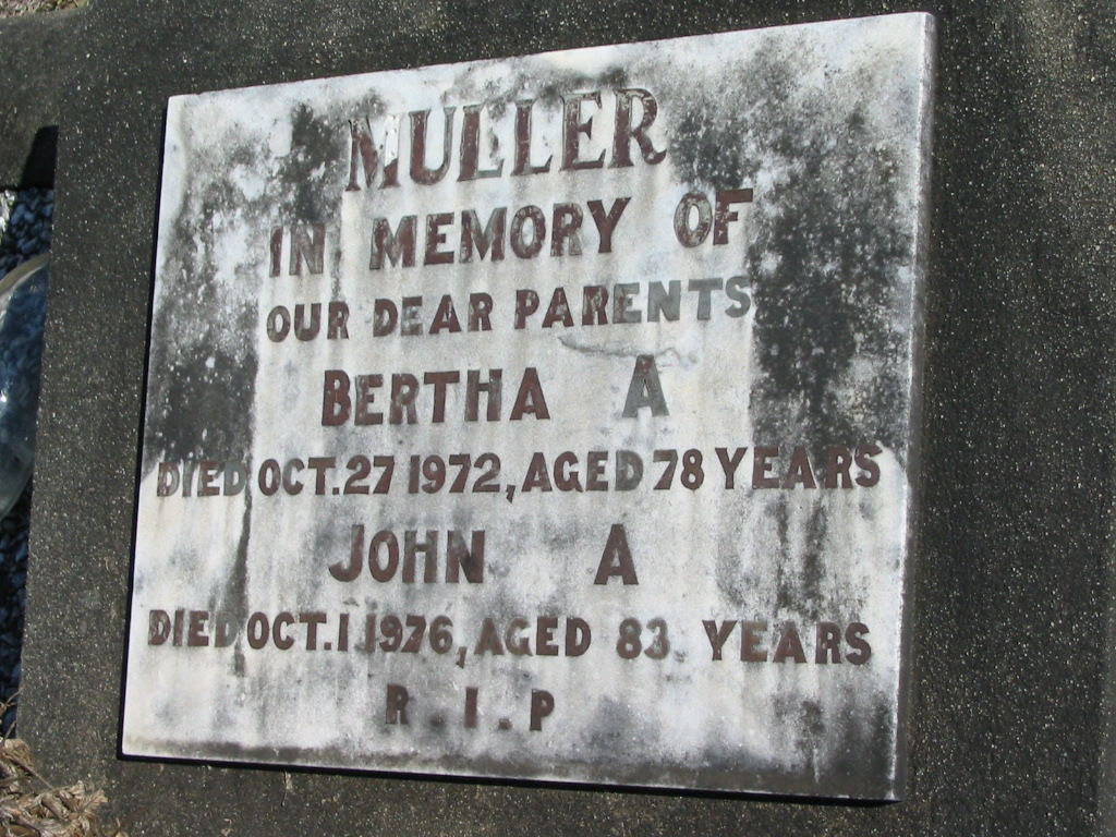Maria E. MULLER, died 12 May 1977 aged 81 years;