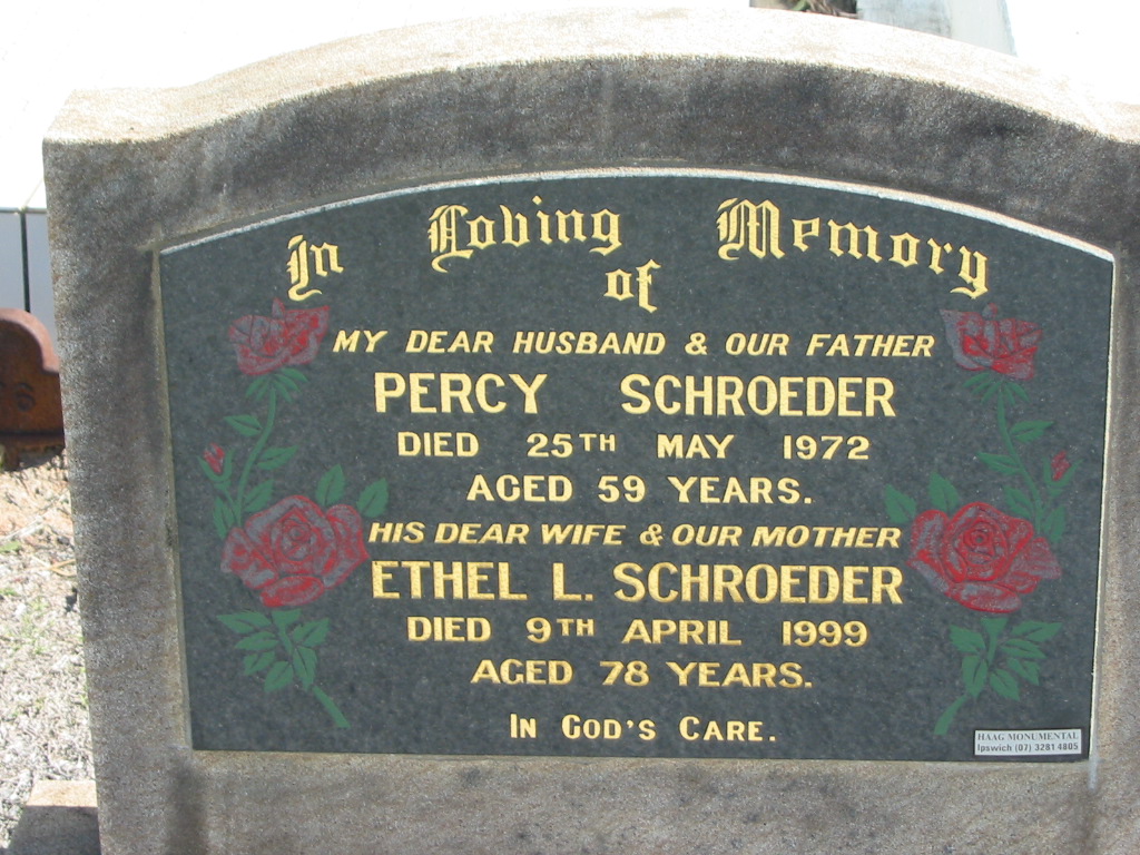 Percy SCHROEDER, died 25 May 1972 aged 59 years, husband father;